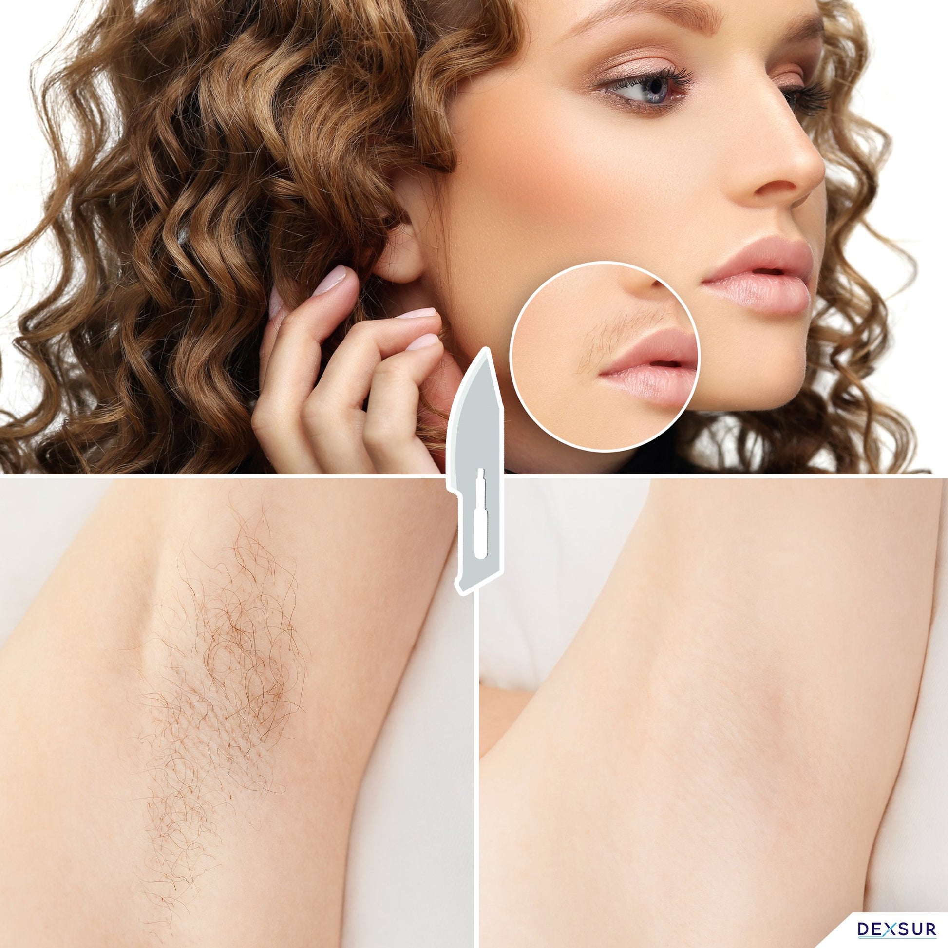 DEXSUR Scalpel Blades Sterile High Carbon Steel Dermablade, # 23 Surgical Blade - Individually Wrapped, a box of 100 Pcs + # 4 Scalpel Handle